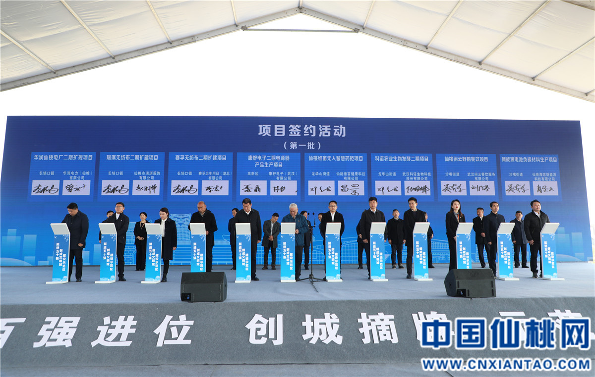 市委常委、常務副市長吳熙垚主持項目簽約、開工儀式。市領導胡常偉、朱慧玲、徐國亮、唐江平、劉方武等出席。各鎮、街道、場、區黨(工)委、市直相關部門主要負責人參加活動。(文/仙桃日報記者 陳國力 攝/仙桃網記者 黃蕓)