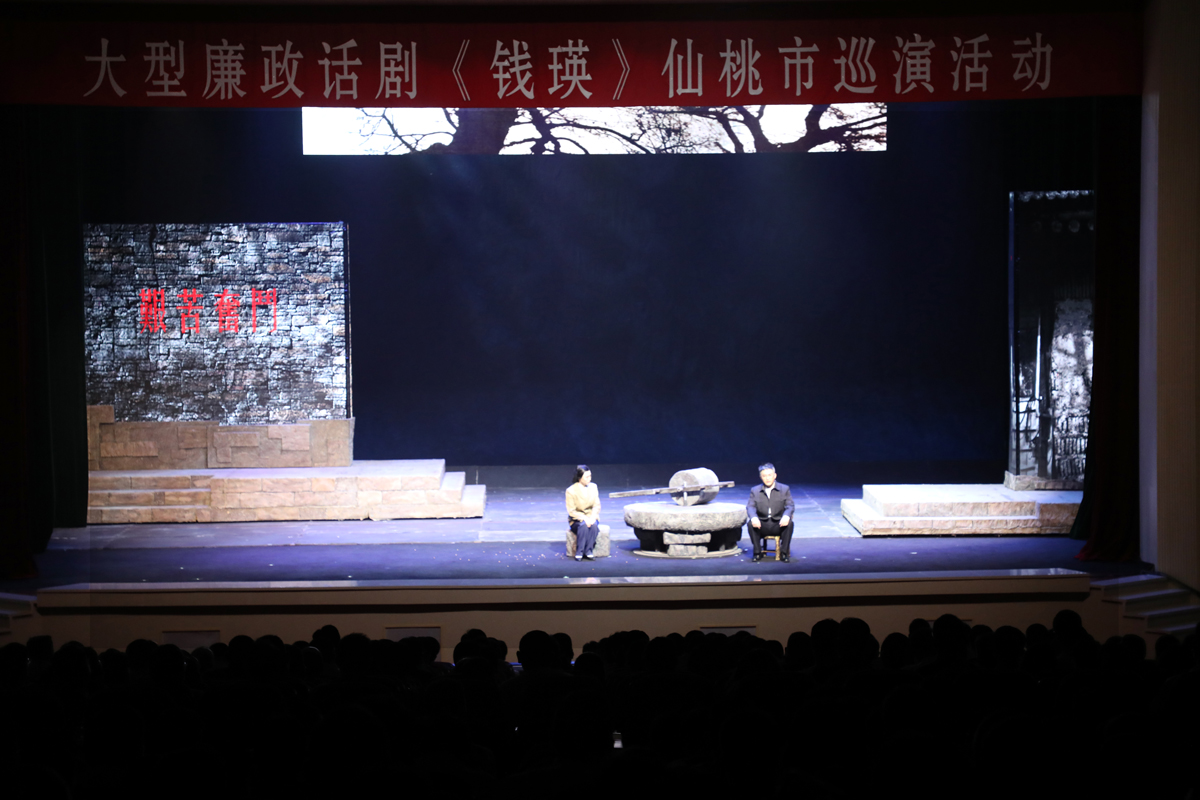 7月4日晚,湖北大型廉政話劇《錢瑛》在仙桃職業學院文化藝術中心上演,我市千名黨員干部現場觀看,同上廉政黨課。