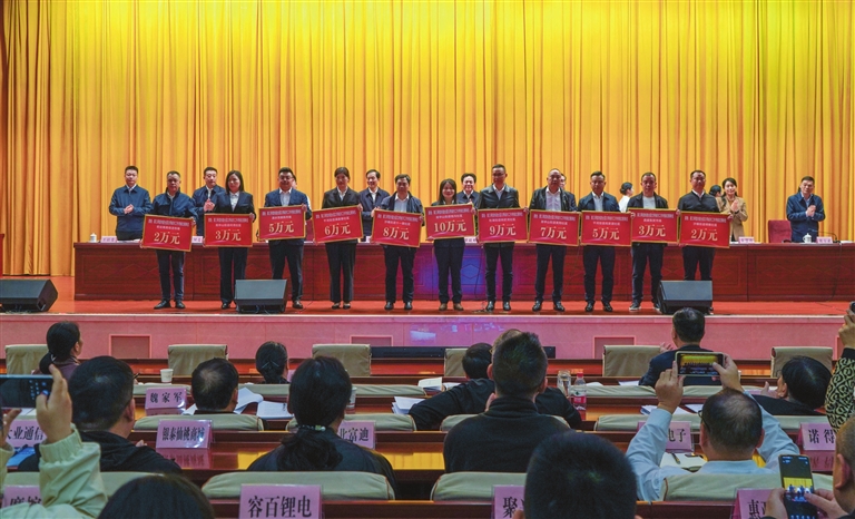 昨日,全市城鎮和產業集中高質量發展動員大會暨三季度經濟形勢分析會召開,會議為示范社區考核紅榜頒獎。 攝影 記者 鄧娟