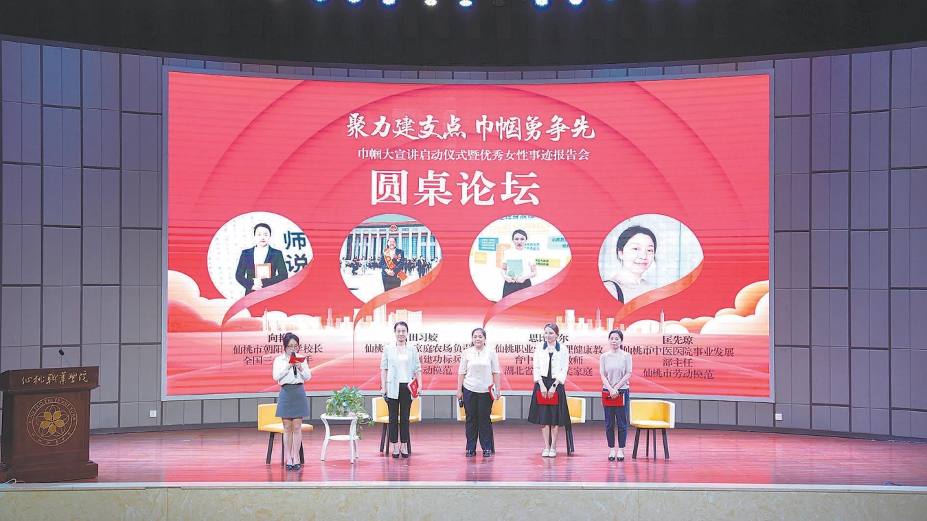 放下活計、捧起書刊,你來領讀、我來發言……仙桃職業學院,一場以“聚力建支點 巾幗勇爭先”為主題的巾幗大宣講暨優秀女性事跡報告會開講。