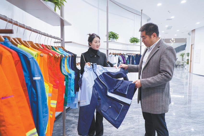 “作為全市首個職業工裝全品類產業園,項目實現了‘簽約即開工、開園即滿園’,為職業工裝產業集聚發展奠定了堅實基礎。”干河街道工業辦主任胡亮介紹,項目自今年2月動工以來,街道全程服務、專班推進,僅用11個月時間,一期項目便順利建成并開園運行。