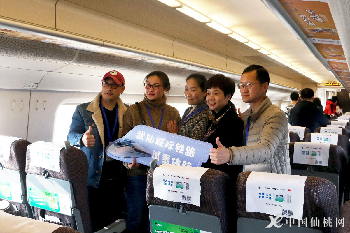 “來,我們來拍個合影。”坐在溫暖如春的車廂里,試乘人員興奮不已,紛紛拿出手機,拍照“打卡”,甚至錄下動車的播報聲。大家用心體驗,用情記錄,全網推送,享受這屬于仙桃的高光時刻。