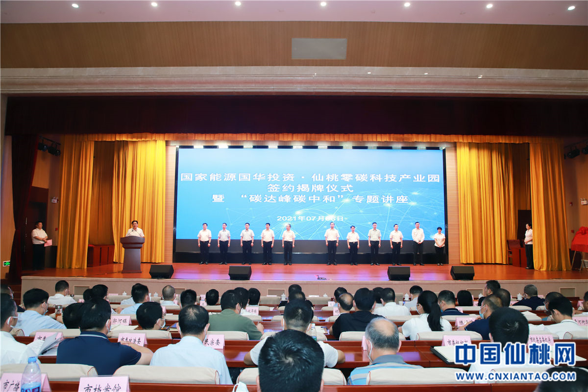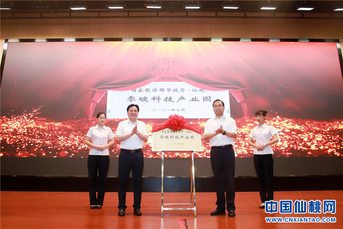 國家能源集團國華投資有限公司黨委書記、董事長劉小奇,市委書記羅聯(lián)峰出席簽約儀式,并為國家能源國華投資·仙桃零碳科技產(chǎn)業(yè)園揭牌。