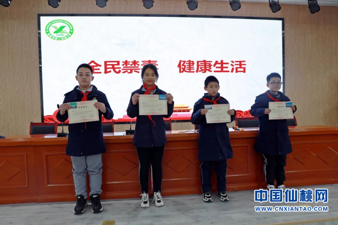 為表彰先進、激勵廣大青少年學習禁毒知識,提升毒品預防教育工作效果,12月24日,仙桃市禁毒辦、市教育局分別在仙桃市第二實驗小學、仙桃市榮懷外語初中舉辦2021年禁毒征文比賽頒獎儀式,對部分獲獎學生代表及指導老師進行表彰,市禁毒辦、市教育局相關領導出席會議。